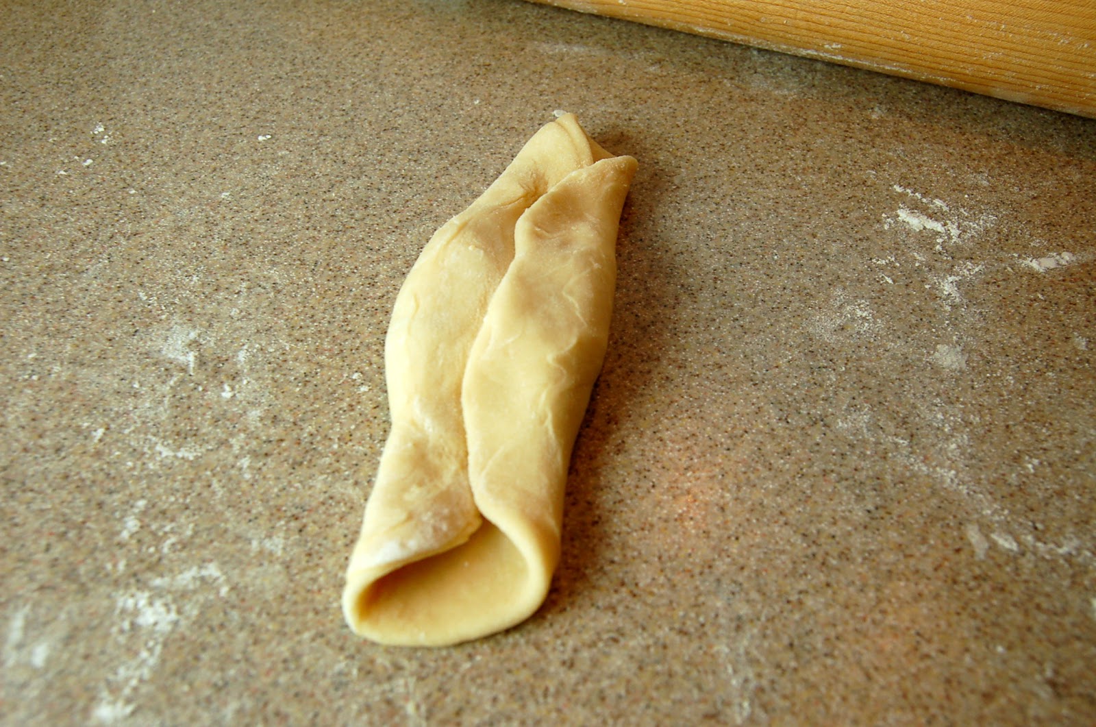 - Break off a small ball of dough and roll out on a well floured surface.