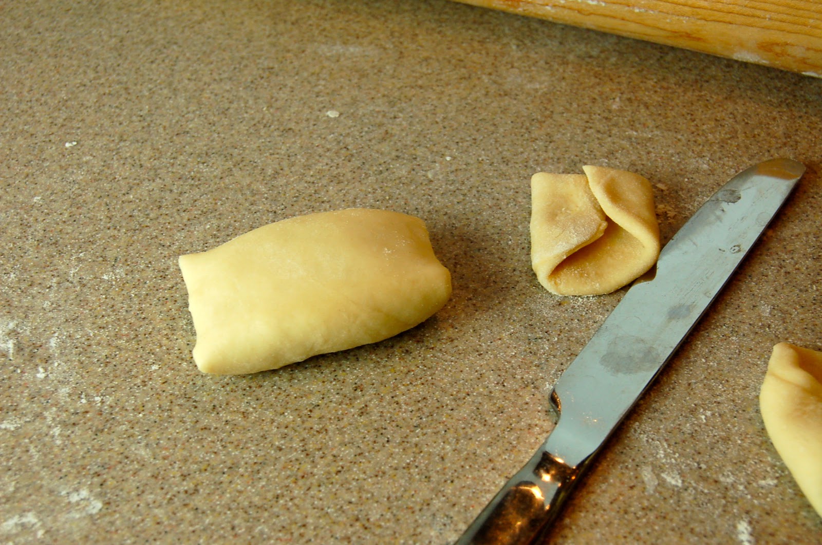 - Break off a small ball of dough and roll out on a well floured surface.