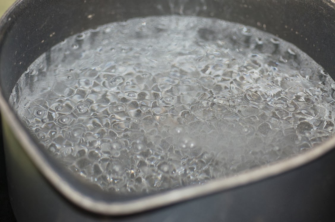 - Heat the water and the vinegar on high and bring to a boil.